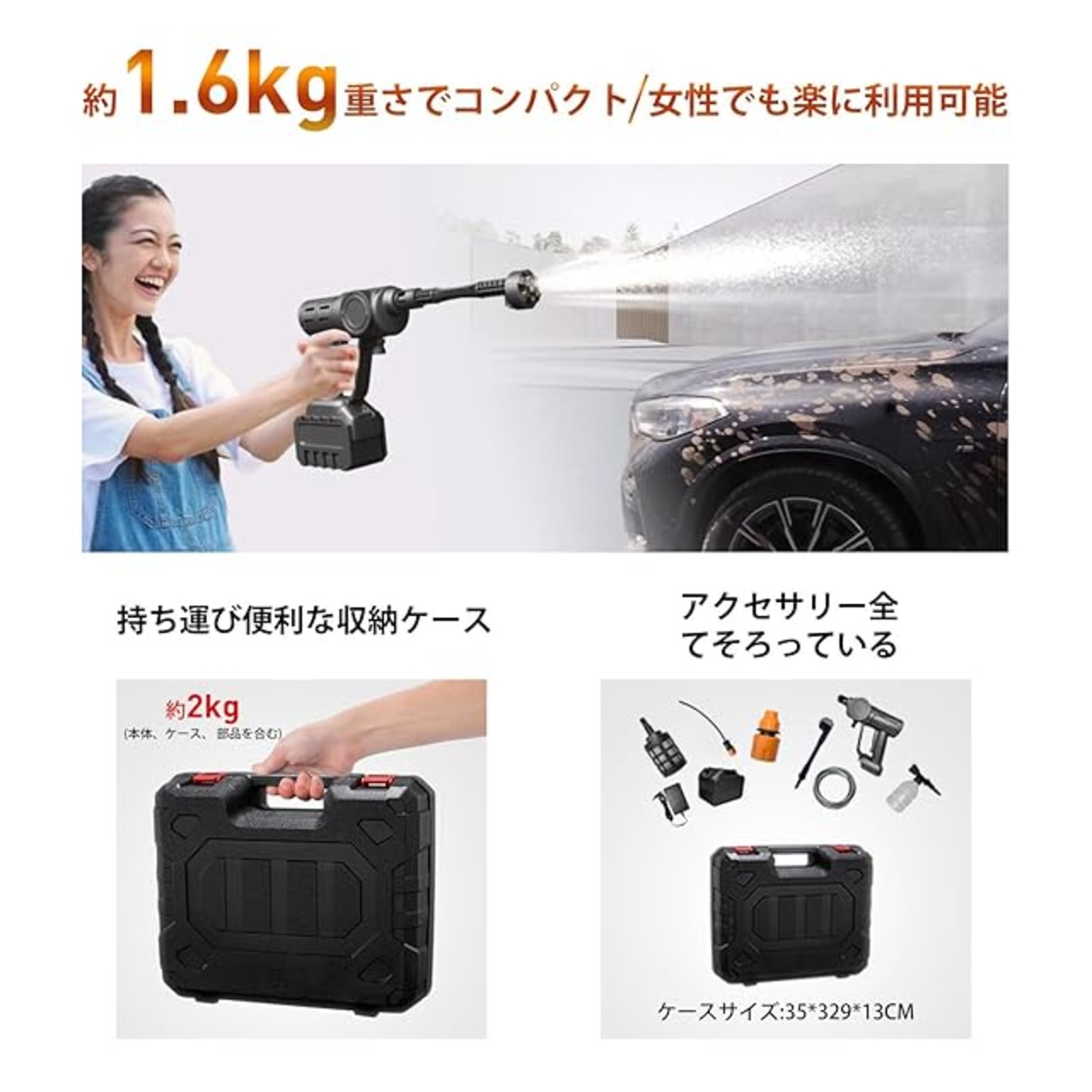 Humew 高圧洗浄機は、家庭用としてもプロユースとしても最適な高性能なコードレス洗浄機です。大容量バッテリーとパワフルなモーターにより、頑固な汚れも簡単に落とせる上、さまざまな洗浄ニーズに対応します。軽量でコンパクトな設計と豊富な付属品により、使い勝手も抜群です。エアコンや浴室、玄関、ベランダの年末大掃除から日常的な洗車まで、幅広い用途でお役立てます。PSE認証済みで安全性も確認済み、日本語取扱説明書付きで初めての方でも安心してご使用いただけます。一年間のメーカー保証付きで、長期間のご利用をサポートします。