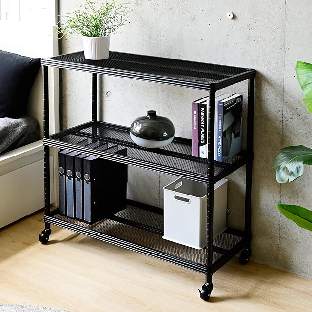 山善(YAMAZEN) ラック 棚 3段 キャスター付き 全体耐荷重90kg (高さ調節可能/荷重に強いキャスター) 幅87×奥行39×高さ90cm キッチンラック 収納ラック 組立品 ブラック MNR-90873CJ(BK) | primer