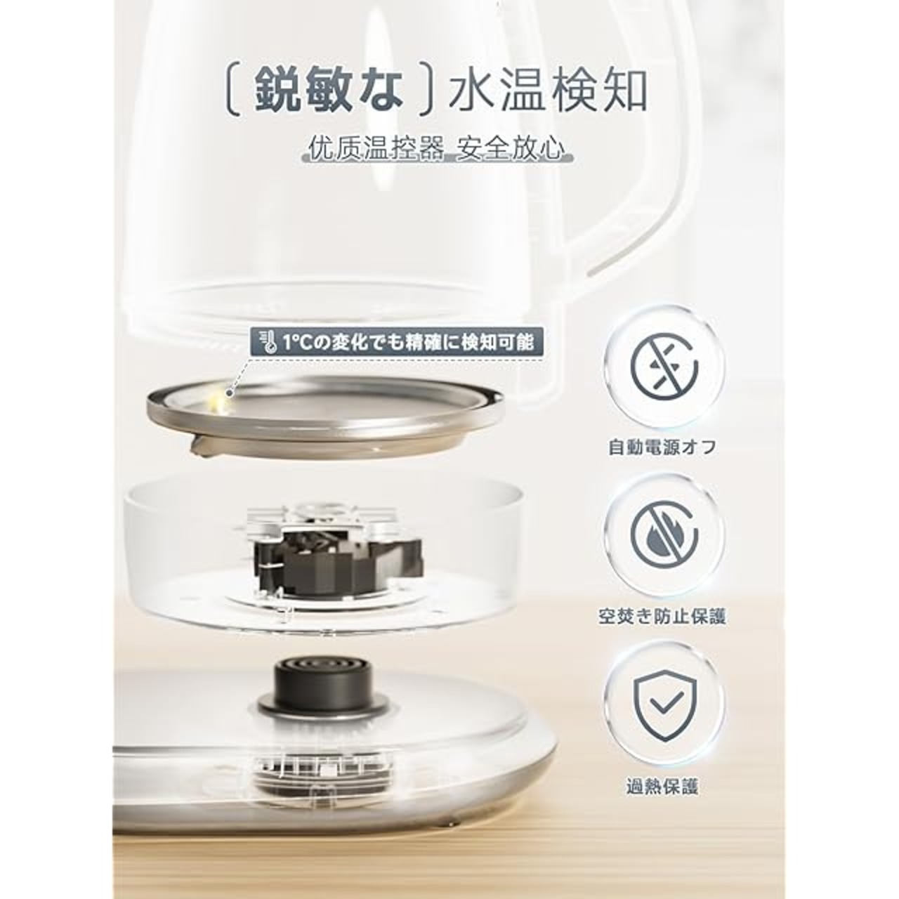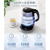 【安全で無臭・ クリアな美しさ】 高品質なガラス製ボディで透明感抜群。 ①有害物質の放出や金属の錆びによる水の劣化を防ぎます。飲料水の安全性を守り、水本来の美味しさをそのまま楽しめます。 ①湯が沸く過程が見えるデザインはインテリアとしてもおしゃれ!汚れが隠れる心配がなく、手入れがとても簡単です。 ◆LEDライトが点灯し、使用中の状態が視覚的にわかりやすい。