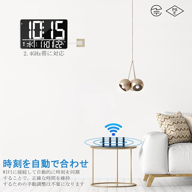 【デジタル時計 WIFI】WIFI接続による自動時刻補正に対応し、時間の不正確さや頻繁な時刻調整の手間を心配する必要がありません。①WIFI自動時刻修正対応 ②℃/℉温度表示 ③12/24時間表示 ④カレンダー ⑤曜日表示 ⑥タイマー ⑦スヌーズ機能 ⑧メモリ機能、見やすくはっきりとした大きな数字は、どの角度からでも読むことができます。このデジタル時計は時間、曜日、温度、月と日付を表示し、明確で快適な視覚体験を提供します。壁掛けおよび置き型の両方に対応し、必要に応じて位置を自由に調整することができます(壁掛けフックと透明フックが付属しています)。