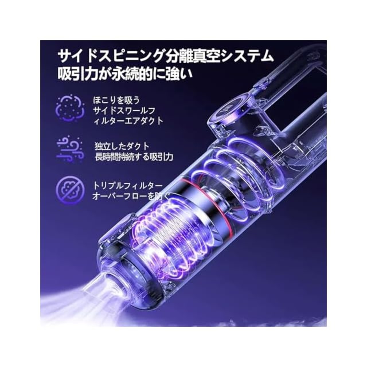 【最強19000PA・抜群な超強力モーター】サイクロンデュアルモータの高速モーターを採用して、最大19000PAの強力な吸引力で、19000paの強吸引力を達成する車用掃除機です。強さが2段階で選べますから、食べこぼし、タバコの灰、粉末の物、ペットの毛、髪や車の中の小石などを手軽にお掃除可能です。部屋の隅々まで届きます、掃除はすべてお任せください。 コードレスで、掃除する時にゴチャゴチャしているコードからの邪魔がなく、愛車のクリーニングをスムーズに行えます。