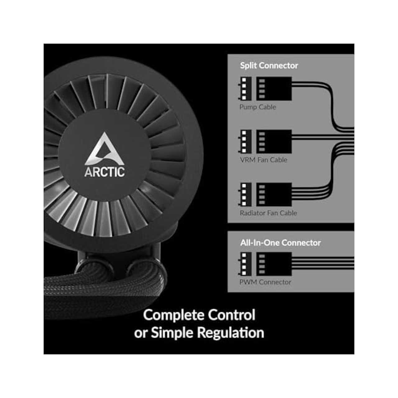 箱から出してすぐに使える! - Liquid Freezer IIIにはプッシュ構成のラジエーターファンがあらかじめ取り付け済み。ファンケーブルはチューブのナイロンメッシュに組み込まれているため、マザーボードに接続するケーブルは1本のみ。MX-6サーマルコンパウンド同梱。