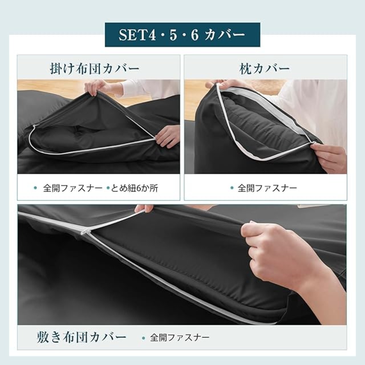 Softime 布団セット シングル 7点セット 中綿1.6kg掛け布団・高密度固綿入り 三層敷き布団・ふわふわ枕・カバー3点・便利な収納ケース 来客用布団セット SEK認証 抗菌 防臭 寝具セット ピーチスキン加工 オールシーズン ブラック