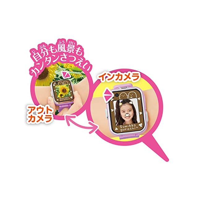 すみっコぐらしのいつでも身に着けて遊べるスマートウォッチのパープルver.です。