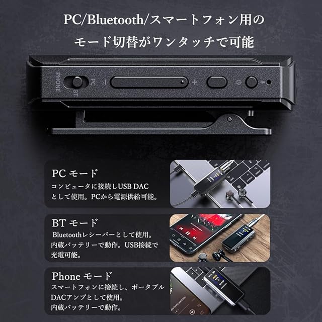 PC/Bluetooth/スマートフォン用のモード切替がワンタッチで可能
