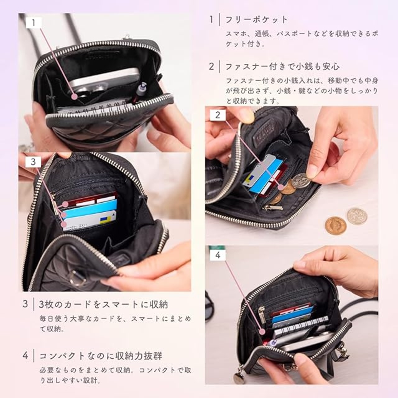 【上質な羊革×本革のレディース スマホポーチ】スマホショルダーとしてもクラッチとしても使える2WAY仕様 上質な羊革と本革を贅沢に使用したレディース スマホポーチが登場。ふっくらとしたキルティング素材が柔らかな手触りを実現し、高級感と機能性を両立。スマホショルダーとして使えるストラップは、シルバー金具/ゴールド金具から選択可能。ママたちからも支持を集めるロゴ入りファスナーが信頼の証です。 コンパクトながら財布機能付きスマホバッグとして、スマホ・カード・小銭・鍵までスッキリ収納。ストラップを外せばクラッチポーチとしても使えるので、日常使いからお出かけ・旅行まで幅広く活躍します。