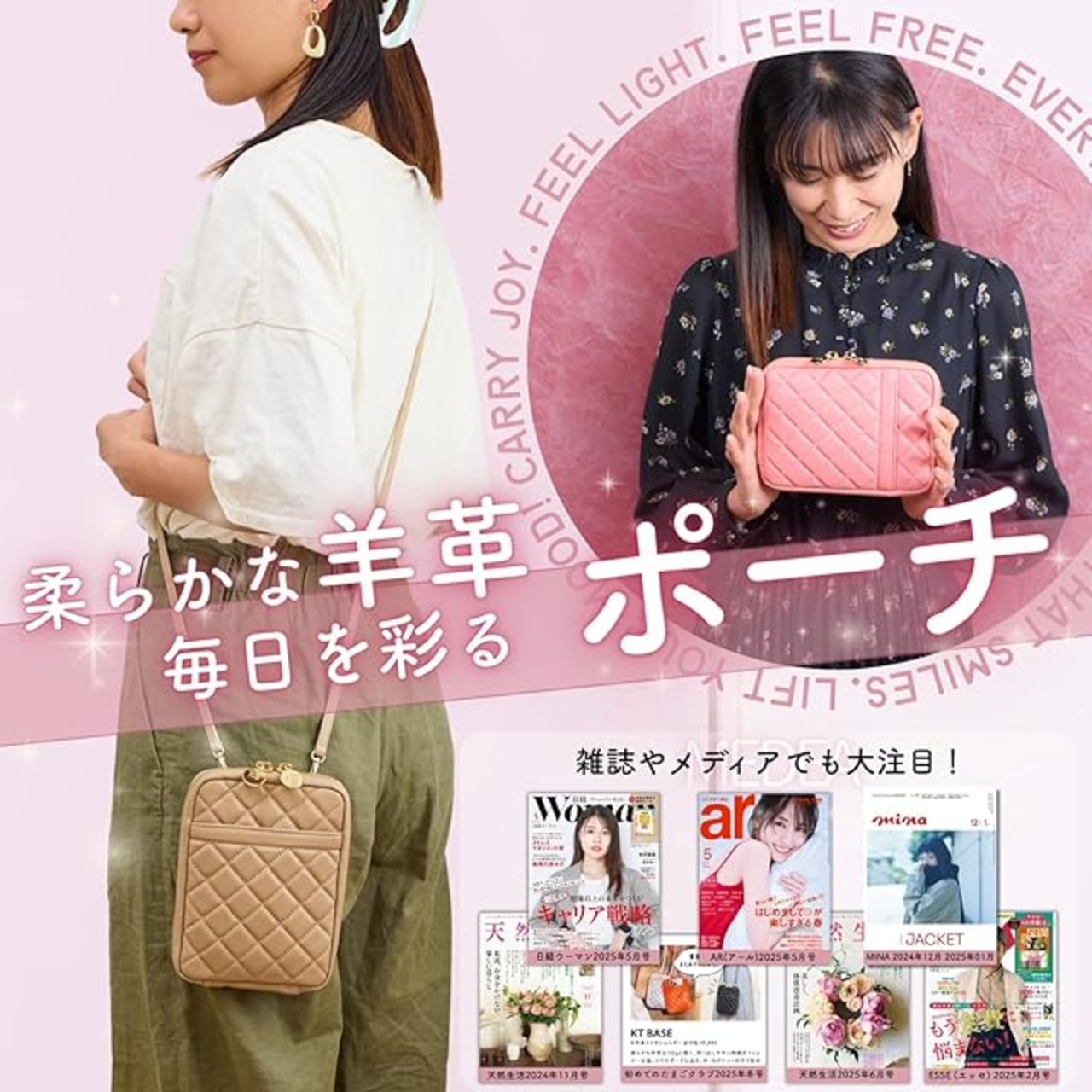 【メディア掲載】 スマホポーチ 本革 ポシェット スマホ バッグ レディース 斜め掛け 小さめ 軽量 財布機能付き 可愛い おしゃれ 携帯ポーチ 羊革 人気 通勤 旅行 [KT BASE]