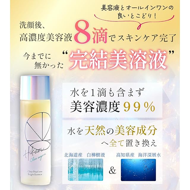 【公式】HIKARI CLEAR オーガニック 完結美容液 クリアパールワンブライトエッセンス 50ml ヒカリクリアオーガニック 高濃度 ビタミンC誘導体 VCエチル 洗顔後8滴 敏感肌 国産オーガニック由来成分 保湿 潤い 毛穴 天然由来成分 二層式美容液 | primer