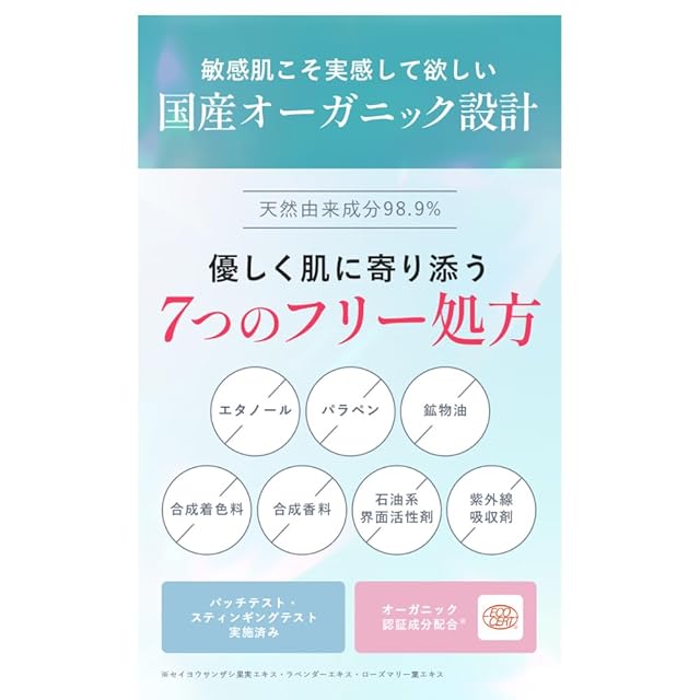 ✅【敏感肌も安心の国産オーガニック設計】天然由来成分98.9% 優しく肌に寄り添う7つのフリー処方