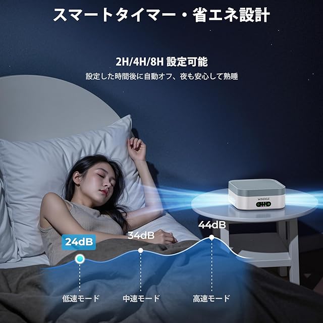【静音運転】卓上空気清浄機は独自の空気浄化技術により、最大風量が200㎥/hで10畳まで対応。最大風速にすれば、6畳の部屋で1時間に4回の空気入れ替えが可能です。ジメジメした雨季で空気がモヤモヤするのをフレッシュに改善します。専門の風道とノイズ低減構造の設計を採用し、騒音が低いため、機械が静音で運転します。最小レベルは1段階で、騒音は24デシベルと低く、睡眠の質を確保するために就寝時は1段階をオンにしてください。3速は最大風速ですので、喫煙時は3段階にして空気を素早く浄化できます。加湿型の空気清浄機ではないため、湿気が多くなることはなく、フィルターにカビが発生しやすいこともありません。
