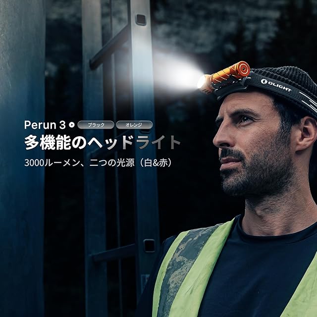 OLIGHT(オーライト) Perun 3 LED ヘッドライト 充電式 懐中電灯 ヘルメットライト フラッシュライト head lamp ledライト 白&赤 3000ルーメン 強力 180°調整可能 IP68防水防塵 軽量 センサー機能 アウトドア 登山 作業用 夜釣り (オレンジ) | primer