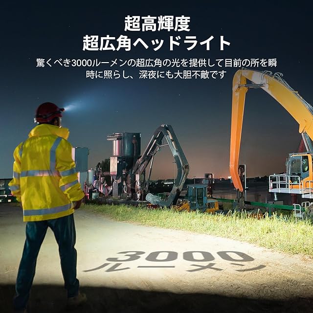 [高輝度・長航続時間]:最大明るさは3000ルーメン、照射距離は最大約160メートルで、夜の散歩や暗い場所での活動にも十分対応できる高輝度ヘッドライトです。また、満充電で最大20日間の連続使用が可能で、頻繁な充電の必要性はなく、長時間の作業用品としてもバッテリー切れの心配はありません