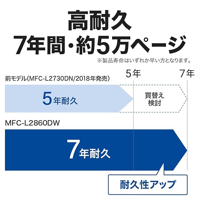 製品寿命:約5万ページまたは7年のいずれか早い方