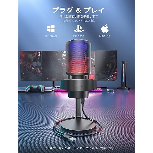 FIFINE ゲーミング マイク USB PC マイク ストリーミング ポッドキャスト レコーディング用 コンデンサー デスクトップコンピューターマイク RGB変換コントロール タッチ式ミュート ヘッドホンジャック ポップフィルター スタンド付き RGBゲーミングマイクAmpliGame A8 ブラック | primer