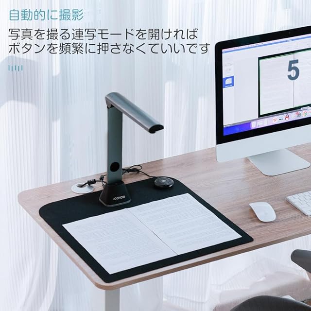 【強力な機能】自動トリミングで画像中からスキャン対象以外の不要部分を削除します。書籍スキャンモードで、自動平坦化技術による見開きページの湾曲を補正し、ページを指で押さえた際に画像中から指を削除します。また、OCR技術で、スキャンしたページをWord/Excel/PDF/TXTに簡単に変換できます。(書籍スキャンモードの使用方法について、ソフトウェア内のデモビデオをご参照ください。)