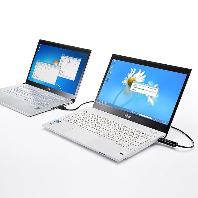 2台のパソコン間をドラッグ&ドロップの直感操作でファイル転送ができる簡単便利なUSB3.0リンクケーブル.接続例:2台のパソコンのUSB3.0ポートに本製品を接続してください。