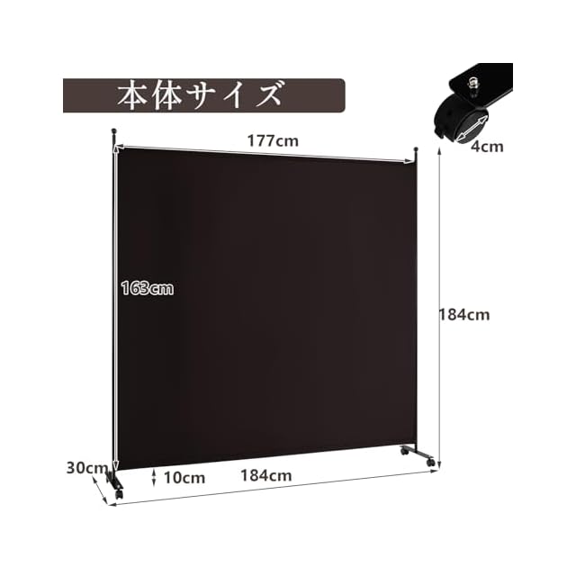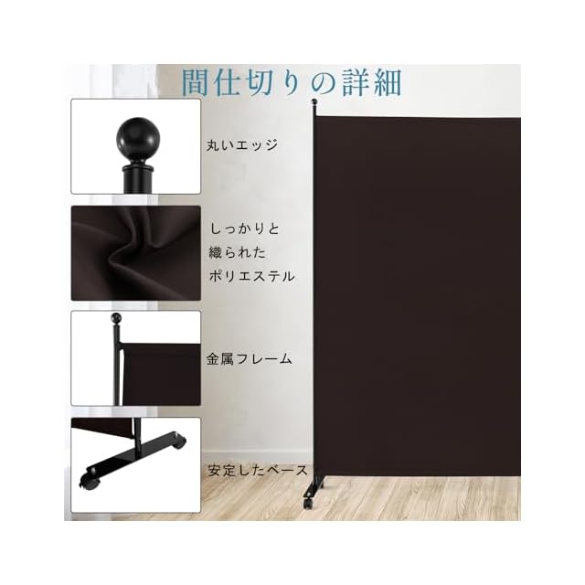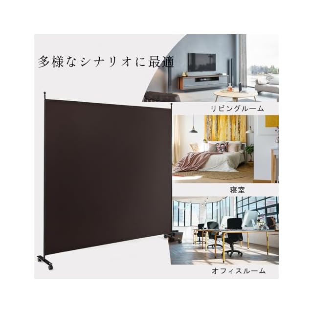Giantex パーテーション 間仕切り キャスター付き 1連 幅184cmx高さ184cm パーテーション おしゃれ 仕切り壁 部屋仕切り 区切り 屏風 スクリーン ついたて 目隠し 室内 おしゃれ 部屋を仕切るパーテーション 軽量 移動便利 自立式 衝立て オフィス 事務所 クリニック 会議室 (ブラウン) | primer