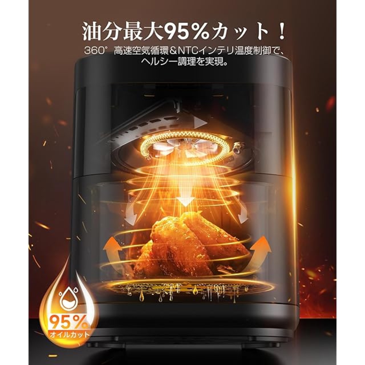 【健康的な食生活を過ごしましょう】 このエアフライヤーは、360°高速空気循環技術により、油なしで驚くほどサクサク&ジューシーな仕上がりを実現。揚げ物好きでもカロリーを気にせずに楽しめるので、健康志向の方やダイエット中の方にぴったりです!毎日の食事がもっと手軽でヘルシーに。美味しさも健康もどちらも手に入るこのエアフライヤーで、理想の食生活をスタートしましょう!