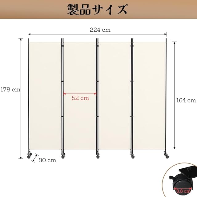 組み立て簡単:全体サイズ:高さ1.78 m×幅2.24 m。カラー:ベージュ。おしゃれ衝立は防水生地でできており、お手入れも簡単です。取り付けも簡単で、1人で20分以内に部屋パーテーションを組み立てることができる。屏風についてご不明な点がございましたら、お気軽にお問い合わせください、弊社はできるだけ早く問題を解決するお手伝いをいたします