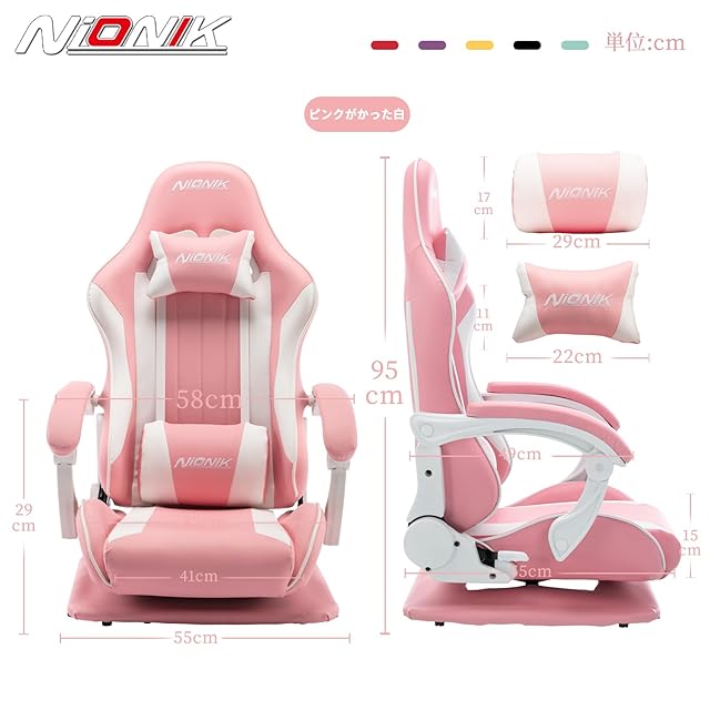 NIONIK ゲーミングチェア 座椅子 ゲーミング座椅子 180°リクライニング 回転座椅子 高反発 ハイバック 連動アームレスト ランバーサポート 360°回転座面 PUレザー 座椅子型ゲーミングチェア(ピンク) | primer