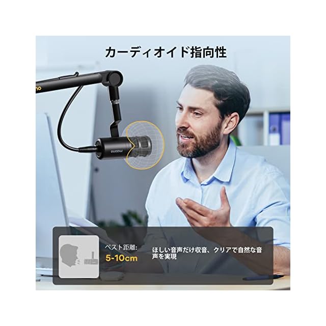 【単一指向特性】指向性の高いカーディオイド特性とマイク上部から音を拾う方式により、環境騒音を拾わずに欲しい音だけを拾うことができ、狙った音をクリアにしっかり捉えます。プロの舞台演出と同様の優れた応答特性を備え、声をより高精度に再現できます。ポッドキャスト、ストリーミング、ライブ配信、楽器の録音など、思いがけない使用体験が得られ、リスナーに良い聴き心地を提供します。ベスト距離:5~10cmです。