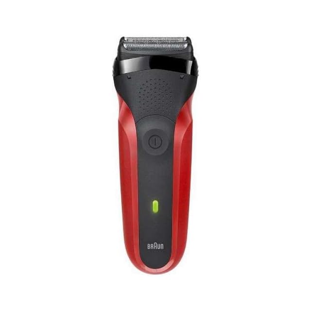 ブラウン(Braun) シェーバー シリーズ3 (3枚刃) レッド300SR 発売日:2017年2月6日 ブラウン シリーズ3 ベーシックモデルはブラウン最高機種*にも搭載されたディープキャッチ網刃を採用した電気シェーバー。 3カットシステムと3連サスペンションヘッドシステムで肌にやさしい深剃り。 *ブラウン シリーズ9と同じ網刃を搭載 ●シリーズ3のエントリーモデル ●シェーバー本体丸ごと水洗い対応 ●ひげを根元から確実にカット ●899パターンの網目がひげをとらえる ●充電交流式 ■ディープキャッチ網刃 900パターンの網目が、さまざまな向きに生えるヒゲをヘッド全体で根本から捕らえます。 ■S字形くせヒゲトリマー さまざまなヒゲを取り込みカット。 ■3連サスペンションヘッドシステム 上下に浮き沈みする3つの刃がさまざまな曲面にフィットし、長いヒゲも短いヒゲも正確にカットします。 ■8倍速充電※ブラウン シリーズ1との比較 5分の急速充電で1回のシェービングが可能 1時間でフル充電。約20分のコードレスシェービングが可能。 *ヒゲの濃さや温度環境により短くなることがあります。保管・使用推奨温度は15〜35℃です。 充電バッテリー表示 LEDランプが充電状態をお知らせ。 ■圧倒的な耐水設計 100%ウォータープルーフ まるごと水洗い すべてのブラウンシリーズ3はIPX7認定。防水機能を5mの水深環境で測定。 だから、水道でまるごと水洗いが可能で簡単お手入れ。 ※本機種は、シェービングフォームを使用したお風呂剃りには対応しません。 ■充電・交流式 電源につないだままでも、コードレスでもシェービング可能。 本体サイズ(高さ×幅×奥行) 156×57×48mm 本体重量 175g 電圧自動切替 100〜240V 電源方式 充電交流式 充電時間 約1時間 連続使用可能時間 約20分 洗浄タイプ 水洗い 充電残量表示 1段階充電表示 替刃 網刃と内刃セット FC21B JAN: 4210201163787 長く快適にお使いいただくために、ブラウンでは、シェーバーの網刃と内刃を約18ヶ月ごと*に交換することをお勧めしています。