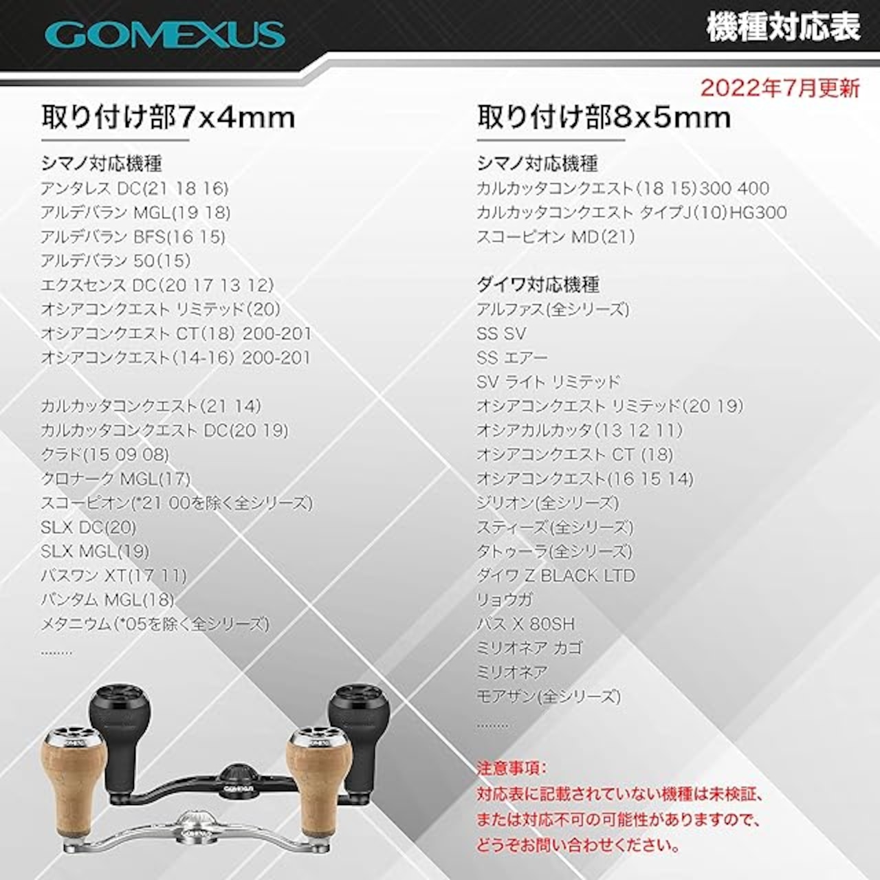 ゴメクサス CH100 リールハンドル シマノ (Shimano) ベイトリール対応 ダブルハンドル アンタレス メタニウム オシアコンクエスト 両軸リール ハンドル交換 100mm コルク製ハンドルノブ付き バス釣り パワーゲーム釣り 左右兼用