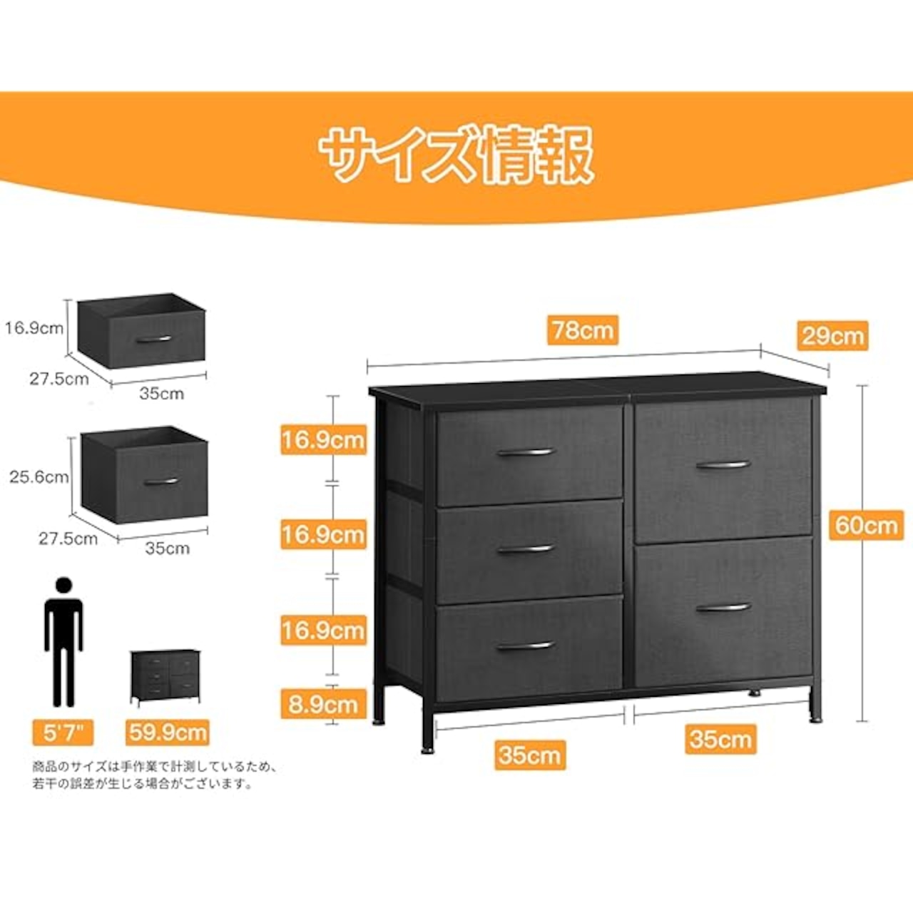 【さまざまな場所で活躍】このチェストは、寝室、クローゼット、リビングルーム、子供部屋、廊下、ベッドサイドに最適です。ランプ、花瓶などの装飾品を木製天板に置くことができます。