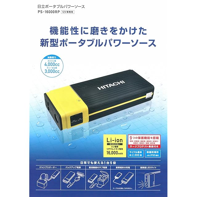 [ バッテリータイプ ] リン酸鉄リチウムイオン [ バッテリー容量 ] 16000mAh(3.2V) [ 最大電流 ] 600A(peak) [ ジャンプスタート電流 ] 300A