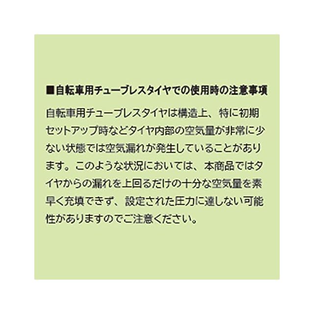 ※最初に「専用タイヤ」と「専用ホイール」を組み込む際、両者は密閉されておらず隙間が多い構造の為、空気がうまく入らない場合があります。(追加注入時など、すでに密閉されている状態では問題ありません) チューブレスタイプの特性となりますので、初期組み込みの為の空気入れを検討される際は、事前にお持ちのホイールのメーカーや専門自転車ショップに確実な方法をお問い合せされることをお勧めいたします。