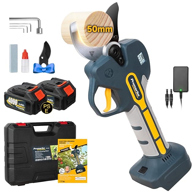 【2025新登場・50mm切断径】 Prunarbo 電動剪定バサミ マキタ互換 4000mAh大容量バッテリー2個付き 5cm 電動ハサミ 剪定バサミ 電動 2段階開き角度調整可能 園芸ハサミ 切断回数と残量表示 LEDディスプレー ブラシレスモーター 日本語取扱説明書付き 充電式剪定ばさみ 品番:PR-E50(50mm電動鋏) | primer