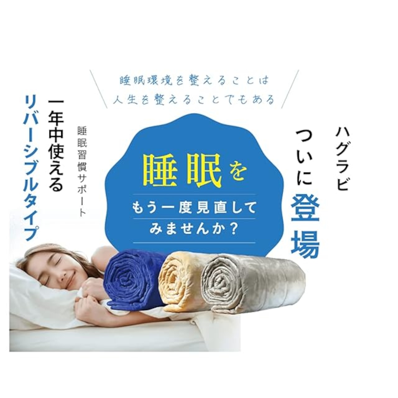 【睡眠投資していますか?】人生の約1/3は睡眠時間と言われています。快適な睡眠環境を整えることは、正に人生を整えることといっても良いのではないでしょうか。ハグラビのウェイトブランケット(加重ブランケット)は毎日気持ちの良い睡眠環境をご提供します。