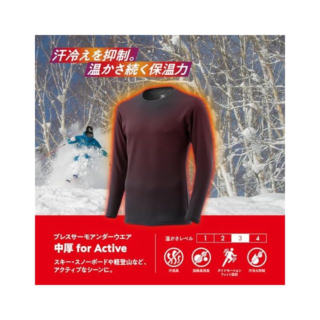 汗冷え対策モデル。クルーネック, 長袖仕様でしっかり保温。