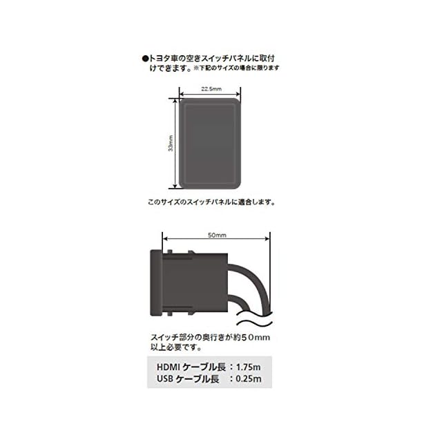 USB/HDMIポートをトヨタ車純正スイッチパネルにビルトイン可能。