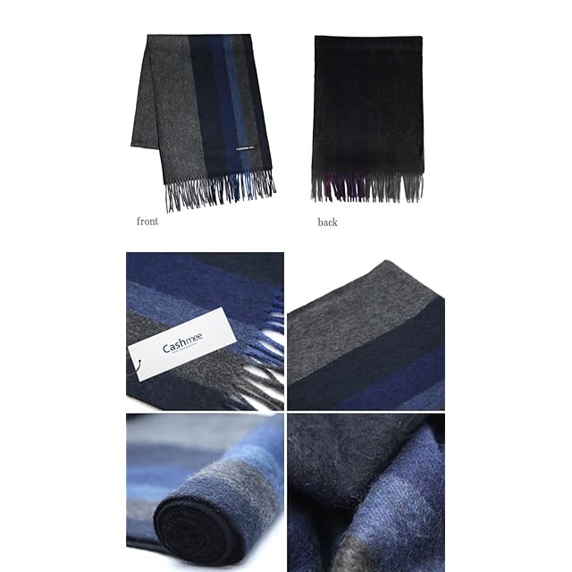 Cashmee034 OUTLET カシミヤ 100% グラデーションボーダー リバーシブル マフラー Neptune カシミア アウトレット (GRAY×NAVY (75) ネイビー)