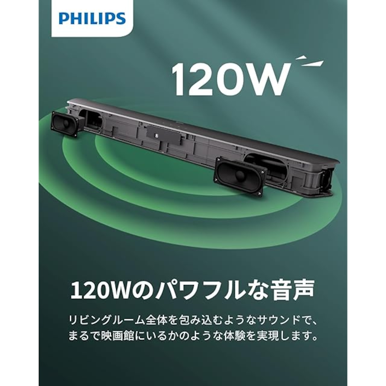 Philips(フィリップス) サウンドバー テレビ用 Bluetooth5.4搭載 スピーカー 120Wハイパワー Soundbar Dolby Digital plus DTS Digital リモコン付属 PC対応 ゲーム スピーカー テレビ/パソコン/スマホ HDMI TAB5109