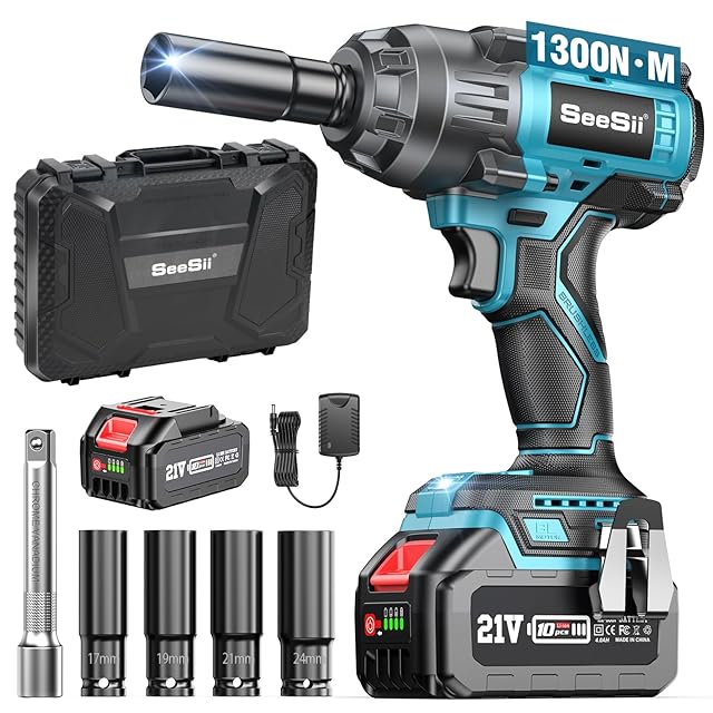 【2025新型】SEESII 電動インパクトレンチ タイヤ交換 インパクト強力 1300N.m BLモーター採用 1/2"トルクレンチ 自動停止モード 正逆切替無段変速 LEDライト 4000mAhバッテリー一個 4本ソケット付き 車用 自動車の修理 ナットの締め付け ボルトの緩み 締付工具 ホイール交換 型番 S13 | primer
