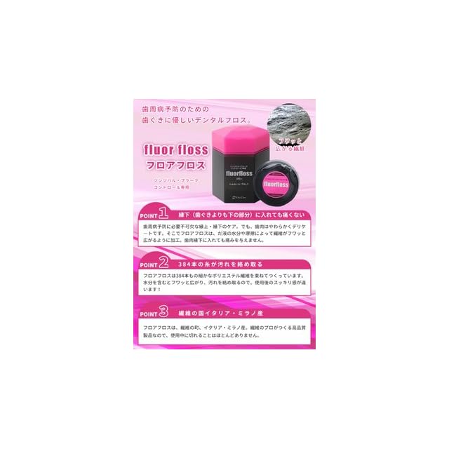 特徴:縁下に入れても痛くない 。384本の糸が汚れを絡め取る 。繊維の国イタリア、ミラノ産 長さ:250m 素材: 糸:ポリエステル、ワックス カラー: 白(糸) 生産国:イタリア メーカー: 株式会社オーラルケア