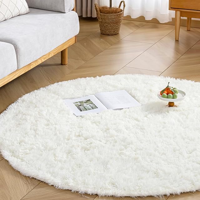 Keusnix ラグ カーペット ラグマット ふわふわ シャギーラグ 円形 絨毯 直径150cm 滑り止め付 洗える 肌触り優しい 防ダニ 抗菌 防臭 オールシーズン快適に使用 床暖房 ホットカーペット対応 ホワイト | primer
