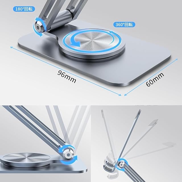 タブレット スタンド アルミ ホルダーipad スタンド 隠し 折りたたみ スマホスタンド 360°回転 スマホホルダー 軽量小型 滑り止め在宅 ワーク Zoom 会議 多機種対応iPadPro/Air/mini/iPhone/Kindle/Macbook/Surface | primer