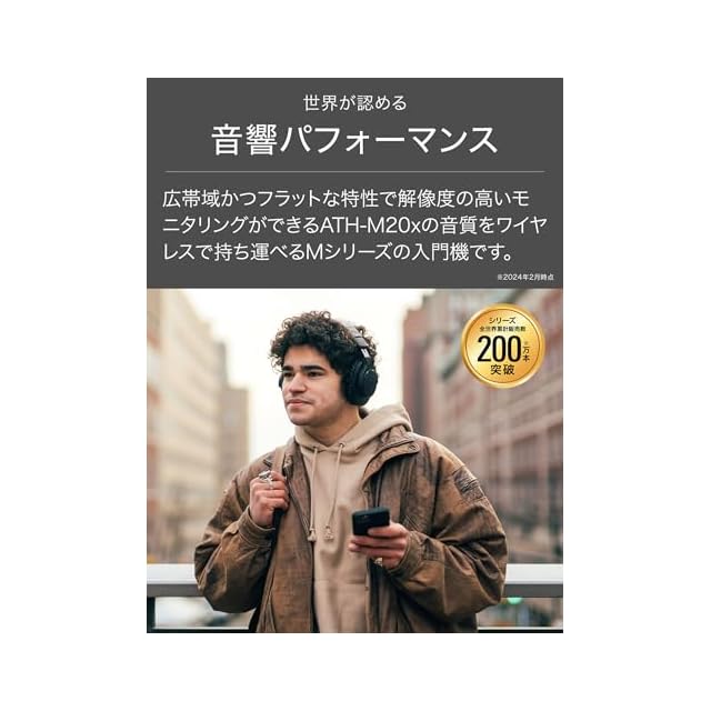 世界が認める音響パフォーマンスをワイヤレスで。 使いやすさを追求した軽量オーバーイヤーモデル。Mシリーズの入門機として、世界のスタジオで高い評価を得ているプロフェッショナルモニターヘッドホン『ATH-M20x』。長い歴史を持つスタジオサウンドが、どこへでも持ち運べるようになりました。