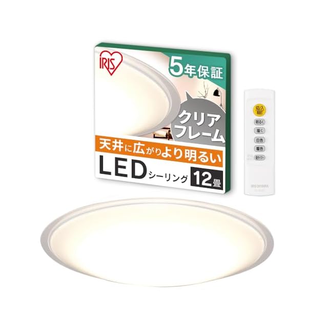 【節電対策】アイリスオーヤマ LEDシーリングライト 12畳調光調色 (日本照明工業会加盟)調光10段階 調色11段階 節電ボタン搭載 リモコン付き 5200lm クリアフレーム CEA12DL-5.0QCF | primer