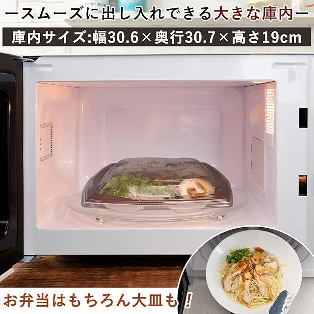 【商品詳細】◇本体サイズ:幅44×奥行32.5×高さ25.5cm ◇庫内サイズ:幅30.6×奥行30.7×高さ19cm ◇本体重量:10.7kg ◇ターンテーブル直径:25.5cm ◇電源:AC100V(50/60Hz) ◇消費電力:900/1200W(50/60Hz) ◇年間消費電力量:60.03/59.93kWh/年(50/60Hz) ◇電源コード長さ:1.5m
