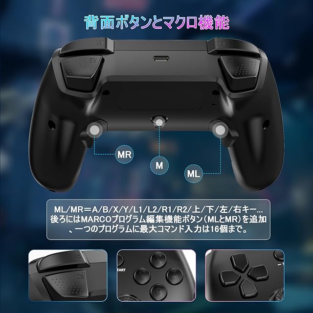 Switch/スイッチ コントローラー Sungale switch1/2対応 プロコン 自動連射機能/連射ホールド 背面ボタン付き マクロ機能 Bluetooth5.0無線接続 6軸ジャイロセンサー Switch1/2/PC/iOS13.0+/Android対応 連射コン 本体スリープ解除 日本語取扱説明書付き (ブラック&ブラック) | primer