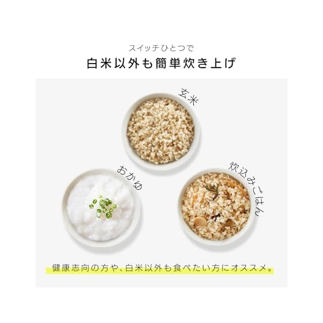 ・炊込み/玄米/おかゆ:スイッチ1つで白米以外も簡単に炊き上げができます。