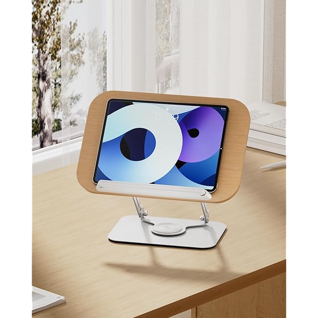 viozon ブックスタンド 書見台 読書台 360度回転式台座 無階段高さ調節 折りたたみ式 アイロン台座 安定性抜群 持ち運びやすい ページ捲り簡単 木目 ダークウッド おしゃれ ライトウッド | primer