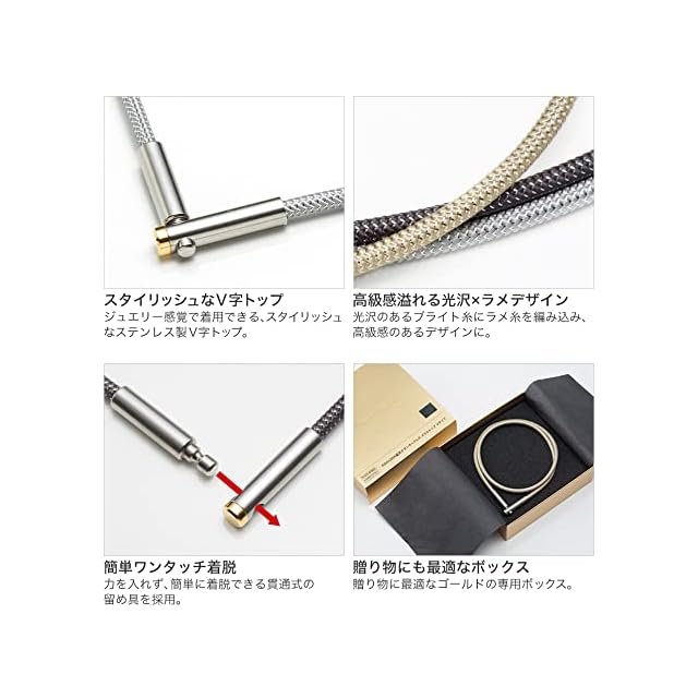 素材:紐部・生地/ポリエステル 紐部・中芯/フェライト+ミクロチタンボール入り芯材 留め具/ステンレス+ウレタン