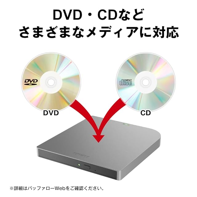 バッファロー USB3.2(Gen1)/3.0 外付け Mac 対応 DVD/CDドライブ バスパワー(給電ケーブル付き) 薄型ポータブル 国内メーカー グレイ DVSM-PMV8U3-GY/N | primer