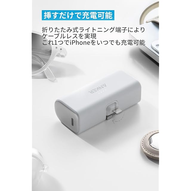 Anker Nano Power Bank (12W, Built-In Lightning Connector) (モバイルバッテリー 5000mAh 小型コンパクト)【MFi認証済/PowerIQ搭載/ライトニング端子一体型】 iPhone 14 / 13 / 12 シリーズ (ホワイト) | primer