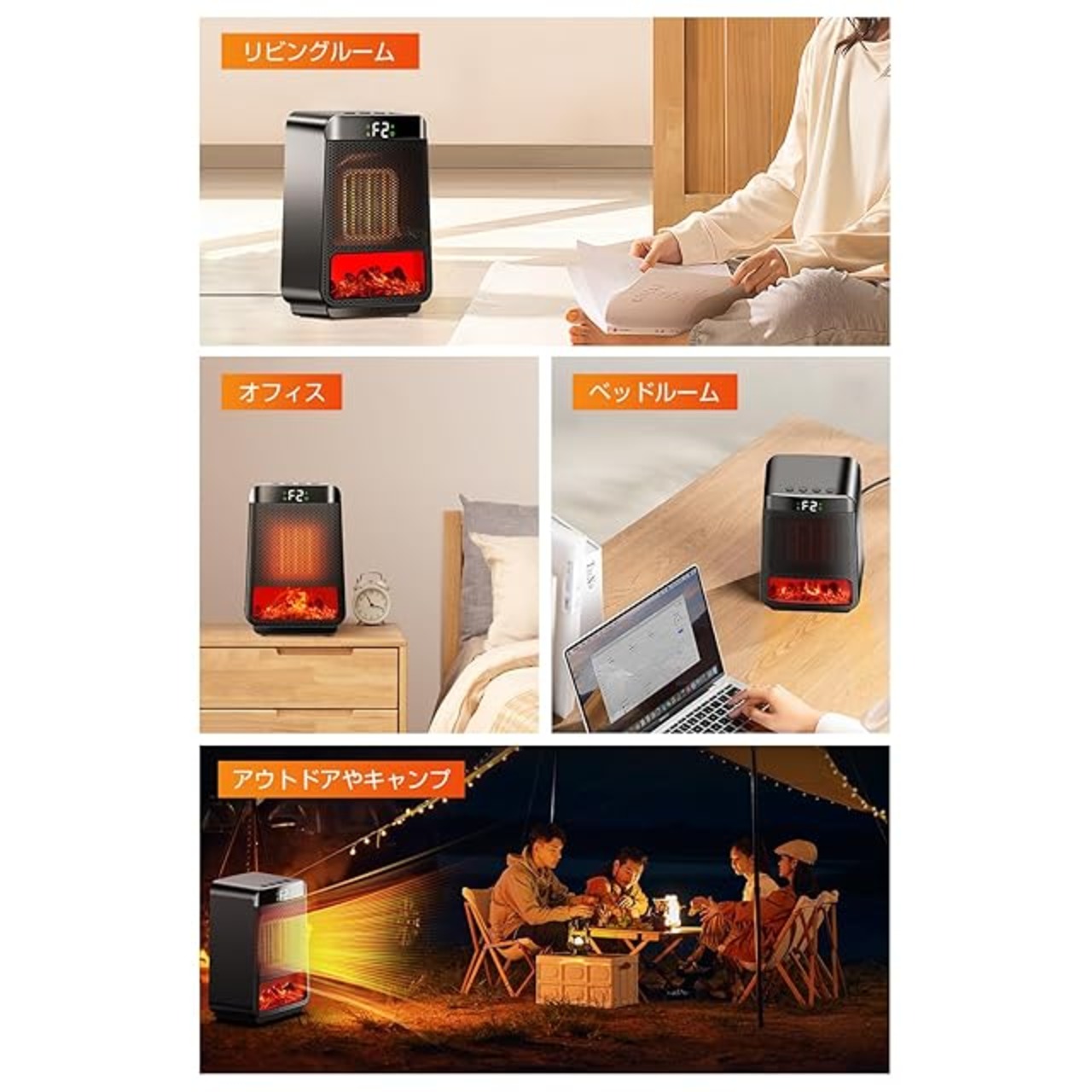 【2秒速暖&セラミックヒーター&3D疑似炎】軽くタッチするだけで、2秒以内に暖かい空気が広がります。高出力運転により、短時間で温度が上昇し、足元から全身までポカポカとした快適な暖かさが広がります。このセラミックヒーターは、揺らめく3D模擬炎を特別にデザインしています。モードを調整すると、炎のライトも変化し、まるで本物の炎のように温かく、生き生きとした躍動感を演出します。視覚的な楽しさを提供するだけでなく、心に安らぎと癒しをもたらします。